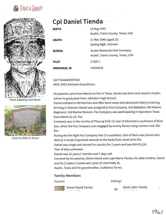 Daniel Tienda - Class Of 1961