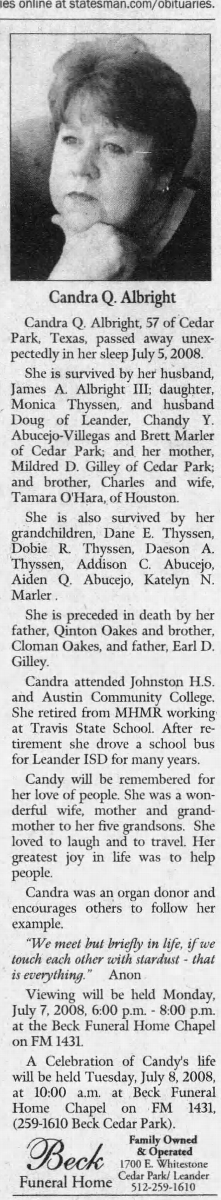 Candra Quinn Oakes (Albright) - Class Of 1967